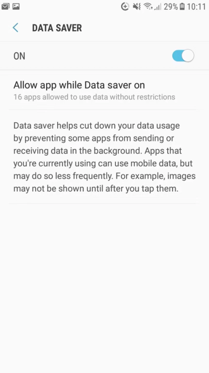 3. 데이터 세이버 > 데이터 세이버가 켜져 있는 동안 앱 허용을 선택합니다.